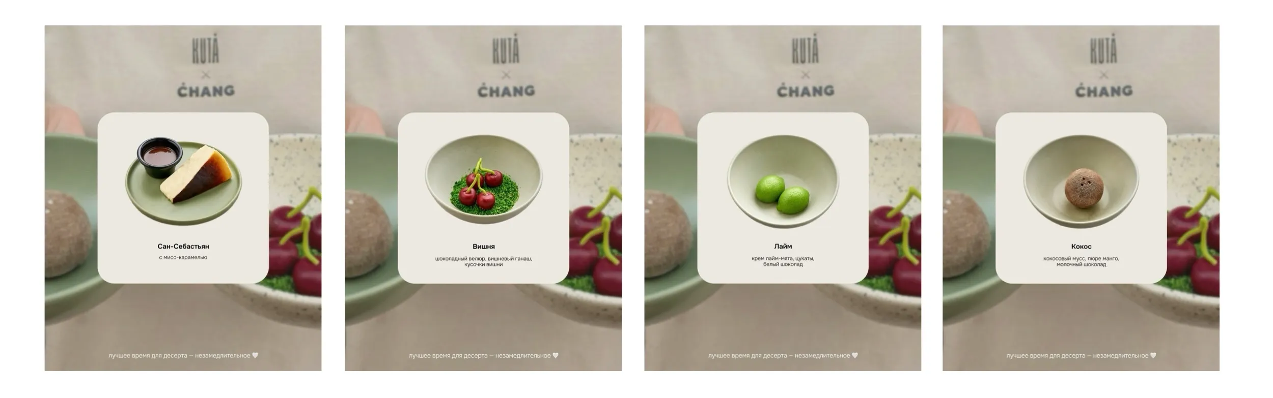 С мая 2025 было принято решение увеличить пакет услуг, и теперь ведём работу с influence-маркетингом не только Kuta, но и всей сети Chang в Москве и Петербурге, включая как бартерные, так и коммерческие размещения.