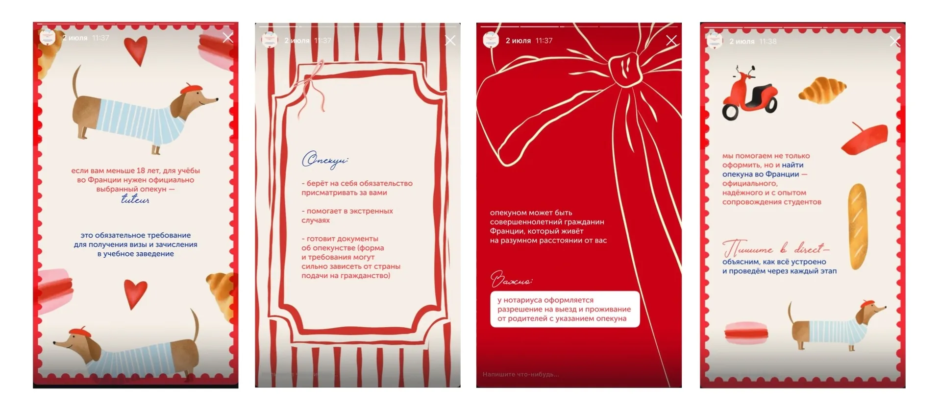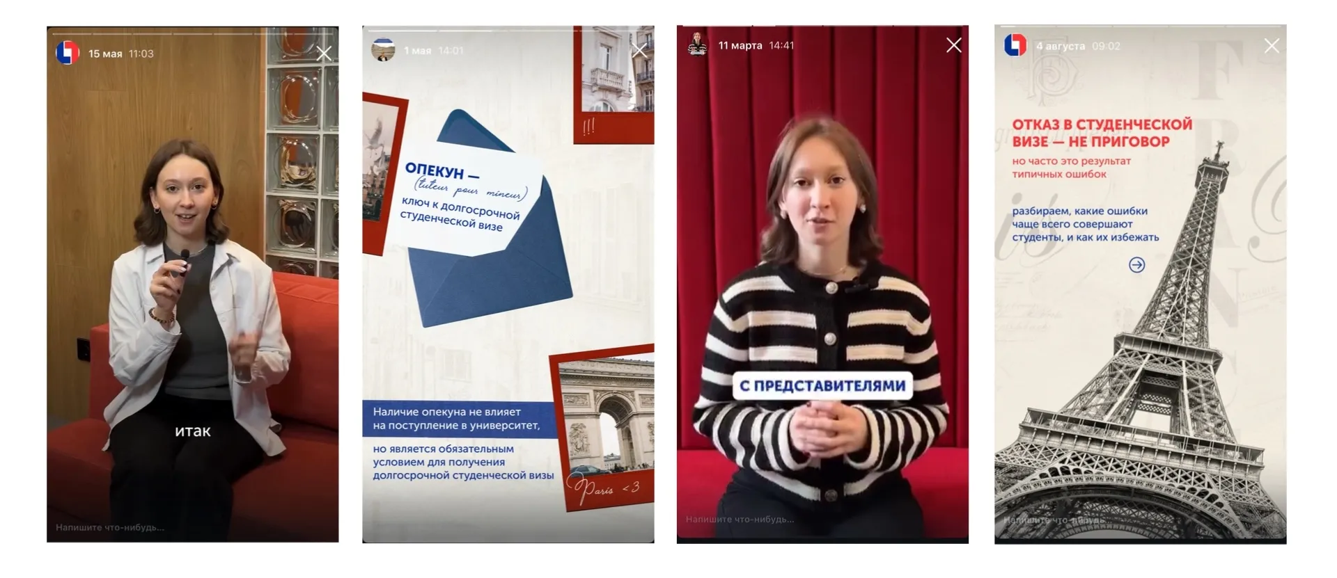 Остальные 2 дня в неделю выходят сторис от контент-мейкера во Франции, который освещает жизнь во Франции изнутри, делится лайфхаками и показывает будни студента.