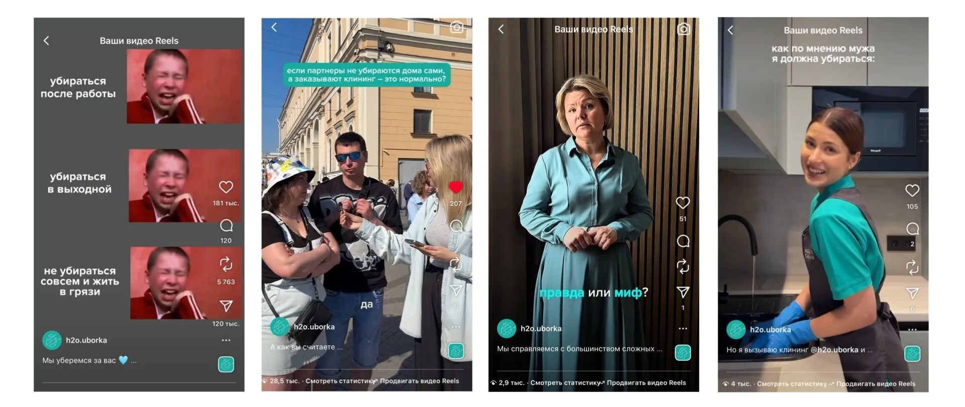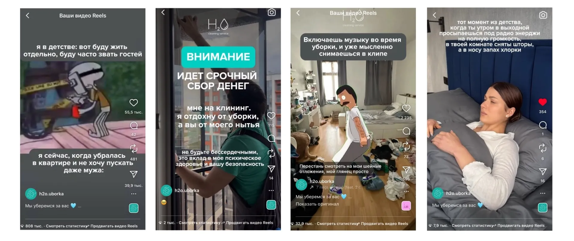 Мы отказались от классического подхода «полезные советы по уборке» и сделали акцент на разноформатном эмоциональном контенте (70% контента).